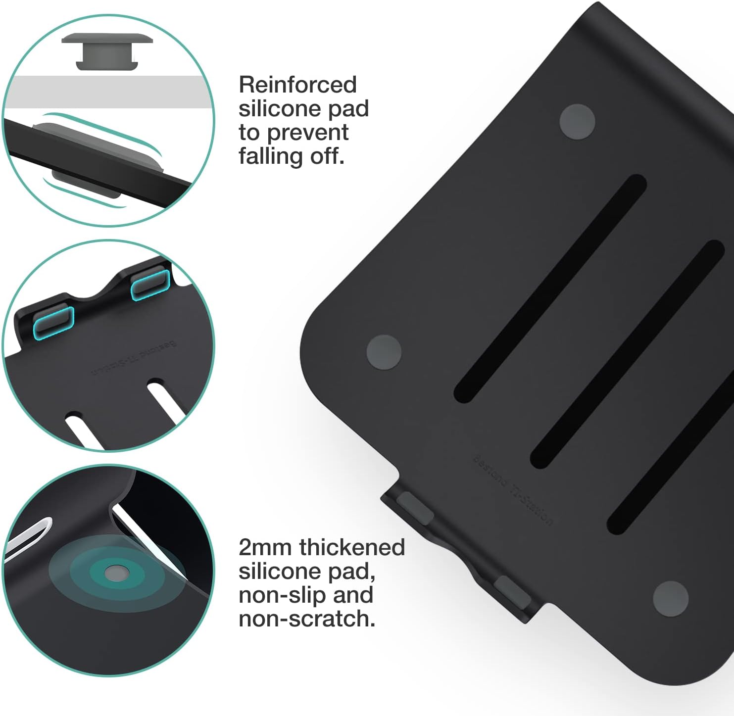 - Considerate Design Silicone pads on the top surface, front lip and at the bottom to hold your laptop stable in place and maximum protect your device from any scratches and sliding. The heat conduction alloy and ventilation hollow design, prevent it from overheating and keep your notebook cooling.
