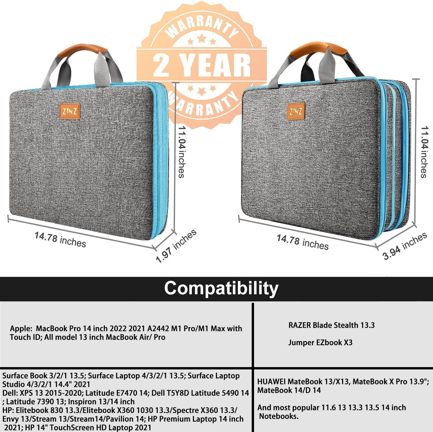 - ✅ Size & Compatibility - Internal dimensions: 13.78 x 10.04 x 1.57/3.74 inches; Compatible with MacBook Air/Pro 13" & 14", Surface Book 3/2/1 13.5", Dell Latitude 14, HP Elitebook 13.3/Spectre X360 13.3/Envy 13/Stream 13/Stream 14/Pavilion 14, Lenovo ThinkPad X1 Carbon IdeaPad 13/14 and most popular 13 inch, 13.3 inch, 13.5 inch and 14 inch notebooks chromebooks Tablets.