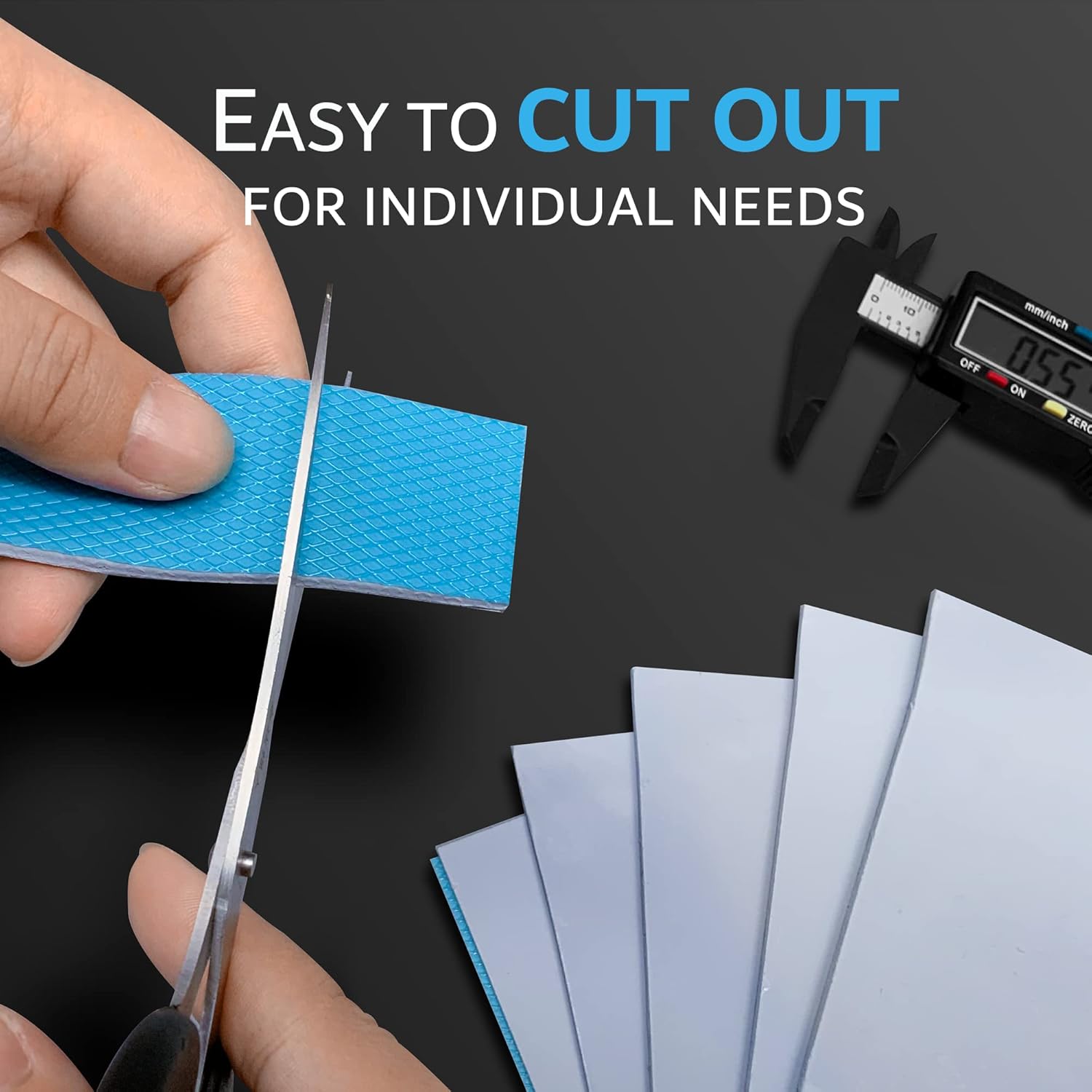 - COOL IN SECONDS -- With a thermal conductivity of 13W/mK, our thermal pad greatly improves heat transfer between the electronic elements and effectively cool the temperature down in seconds. It also provides insulation, shock absorption, extra sealing and protection for your electronic elements