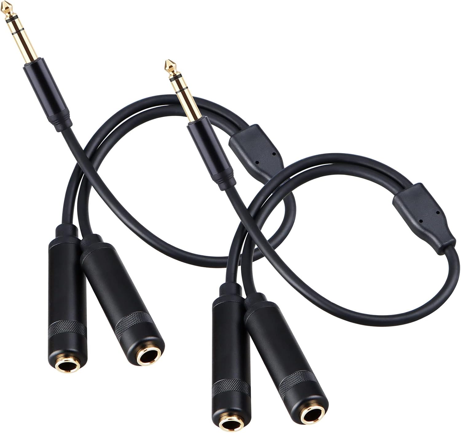 HOSONGIN 1/4" Stereo Splitter Cable (2-Pack), 1/4 Inch TRS Male to Dual TRS Female Y Adapter, Gold-Plated, Noise-Free Audio Cable for Headphones, Amplifiers, Studio, 1.6Ft (20 inch)
