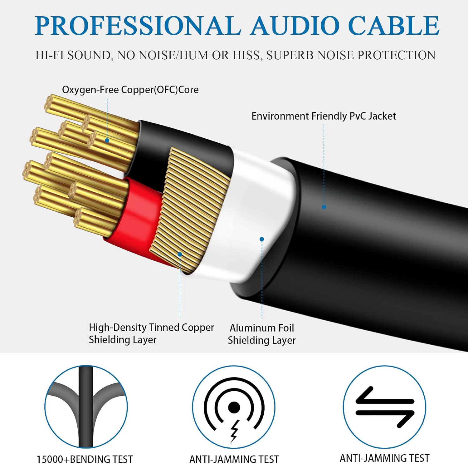 - Enhanced EMI/RFI Shielding for Noise-Free Audio: Equipped with double-layer shielding (copper braided and aluminum foil), this splitter cable drastically reduces EMI/RFI interference, ensuring stable, noise-free audio transmission even in high-interference environments like crowded recording studios or live sound systems.