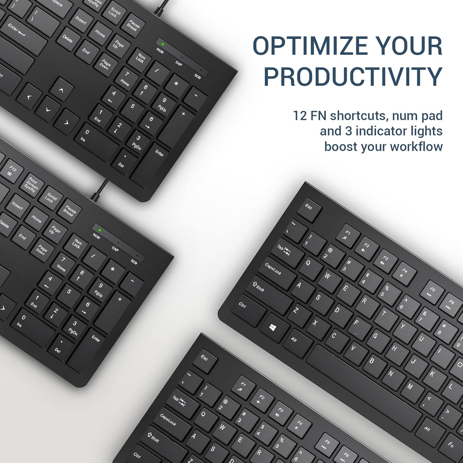 - Optimize Your Productivity: Boost your workflow and simply how you use your computer with a large number pad, 3 indicator lights and 12 multimedia shortcuts, including video, volume, surfing, email control etc.