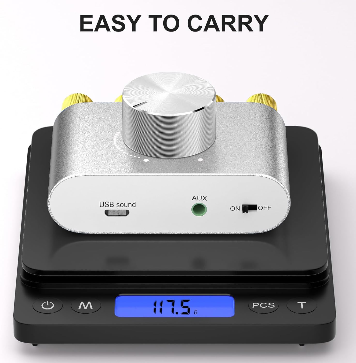 - 【Truly Amplified Your Music Experience】-- This little powerhouse delivers crystal-clear stereo sound that belies its size. The 80W×2 channels fill your space with rich, high-fidelity tunes, effortlessly streaming via Bluetooth from devices or connected through the handy AUX/USB inputs. Don’t let its size fool you. It has a high quality feel and sounds wonderful. The small size means you can tuck it right under one monitor, leaving the volume control handy and taking no desk space.