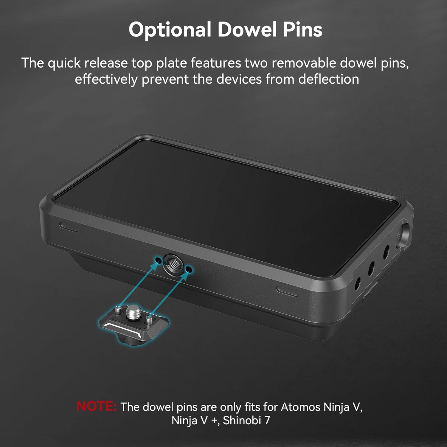 - Wide Compatibility: The quick release plate features a 1/4"-20 screw supports devices such as camera, monitor, cage, light, etc. And the quick release plate is reserved for 2 optional dowel pins, which can be removed and installed as needed to effectively prevent the devices from deflection