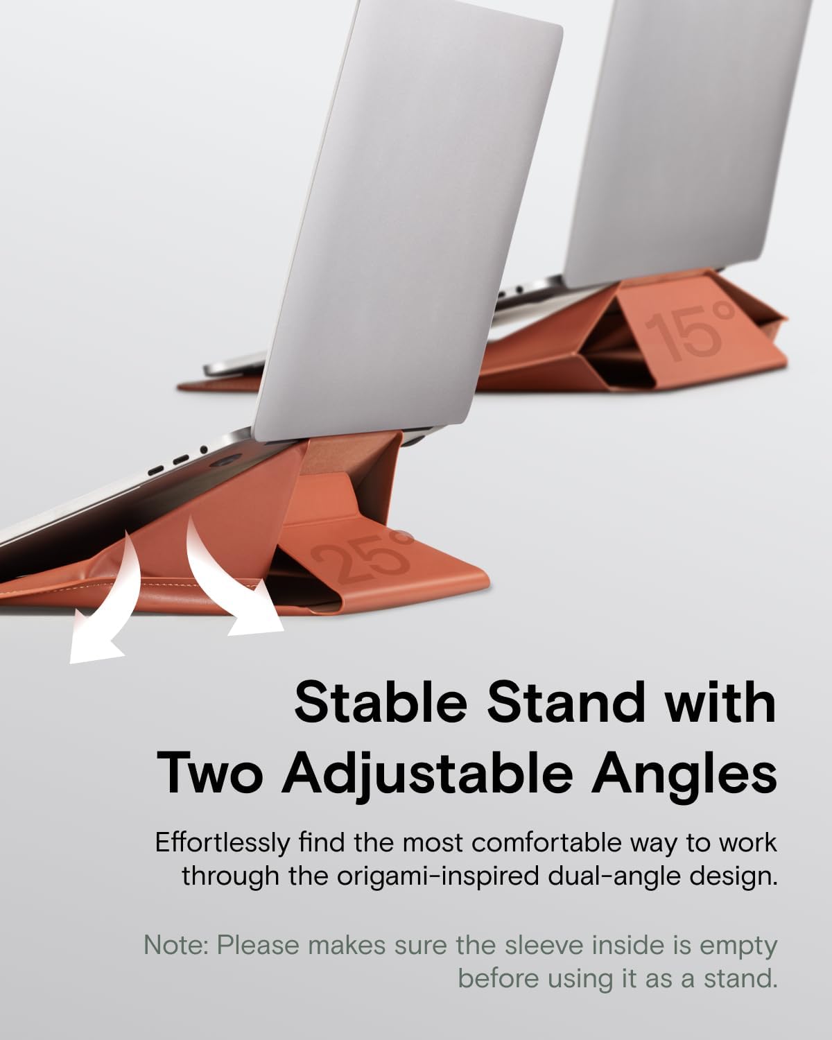 MOFT Laptop Carry Sleeve, 2-in-1 Laptop Bag & Stand for 14" MacBook Air/Pro & Dell/HP/Lenovo/Asus, Stylish Slim Computer Sleeve Bag with Expandable Storage for Computer Accessories, Sienna Brown