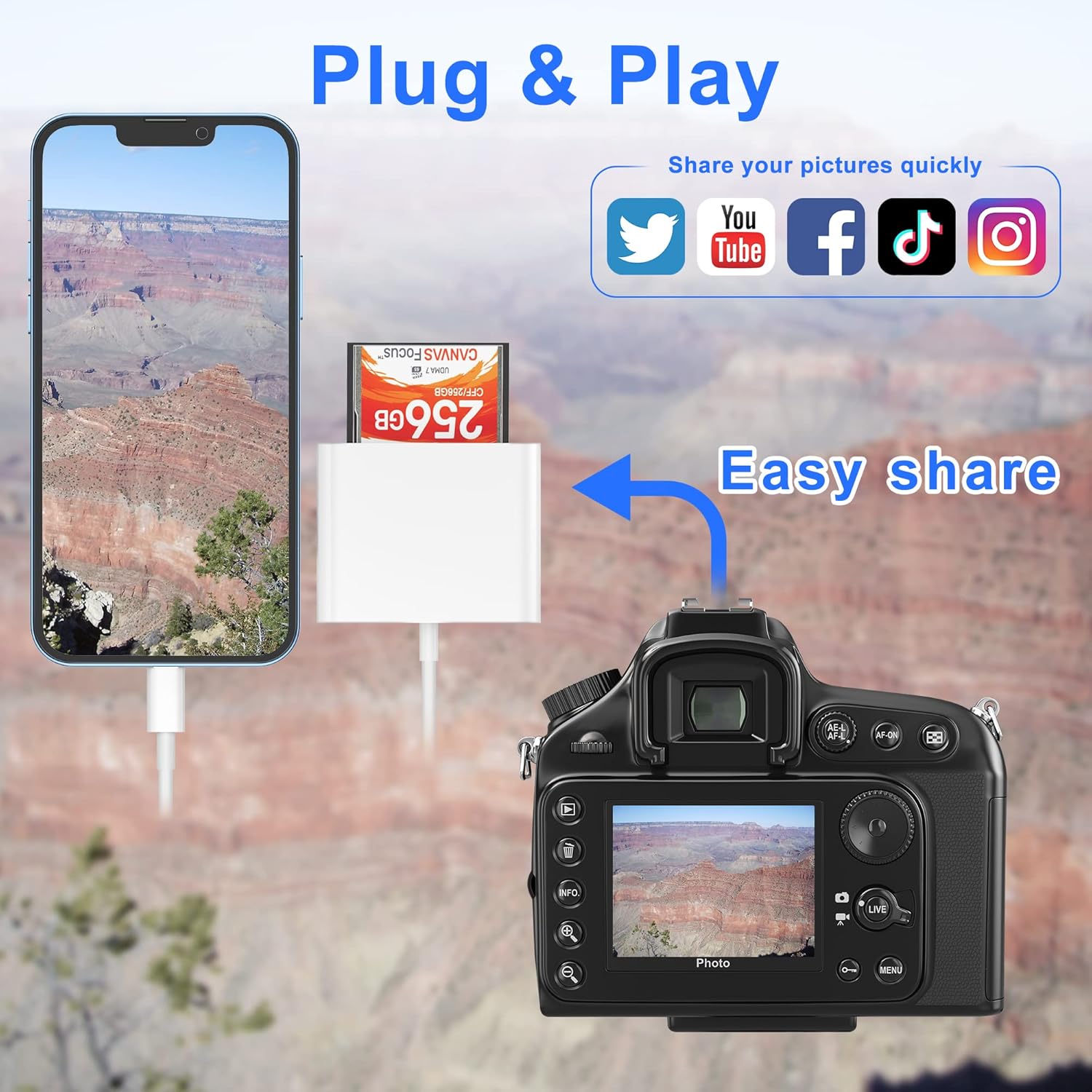 CF SD Card Reader for iPhone iPad, 3 in 1 Compact Flash Memory Card Reader Adapter, 3-Slot MicroSD CF SD Trail Game Digital Camera Viewer for iPhone 14/14 Pro/13/13 Pro No App Required