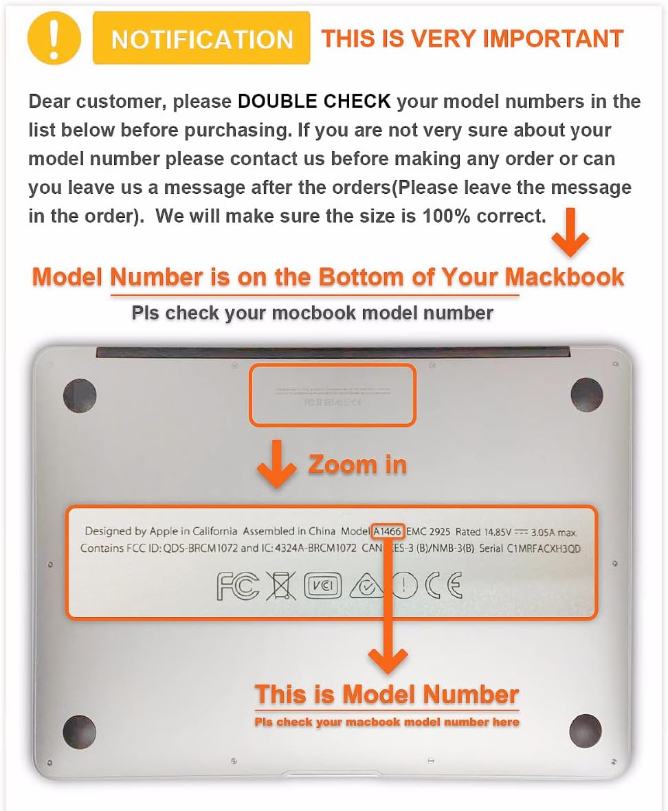 - 【WARNING】This Hard Shell Case is NOT Compatible with MacBook Pro 16 inch Case, Not Compatible with MacBook Pro 13 inch Case and NOT Compatible with MacBook Air 13 inch Case. Please Check the Model Number “AXXXX” on the Back of your Laptop before Placing your Order.