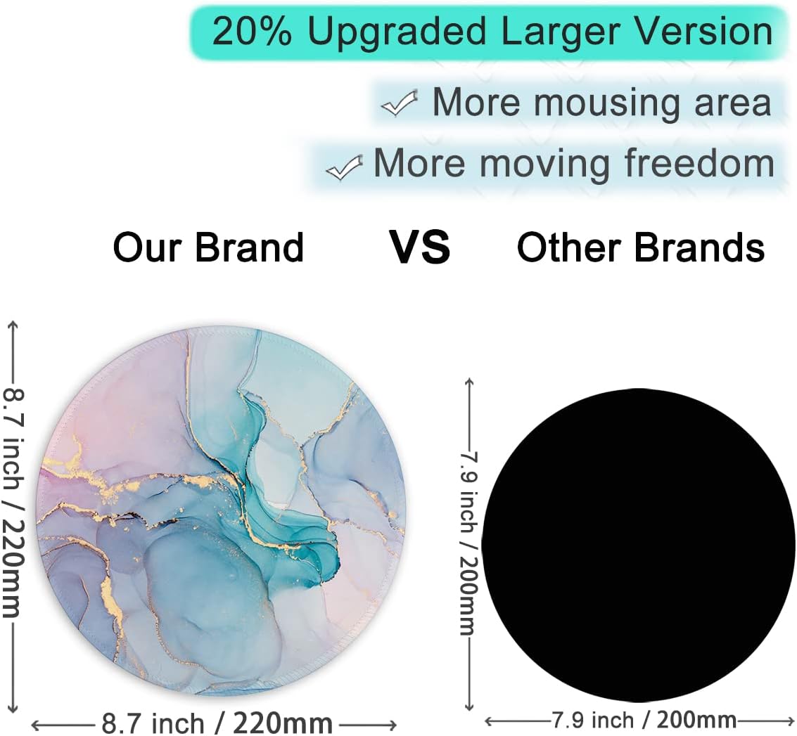 ITNRSIIET Round Mouse Pad with Stitched Edge Premium-Textured Waterproof Non-Slip Rubber Base Desktop Protection Mat Diameter 8.7 inches, Color Textured Marble