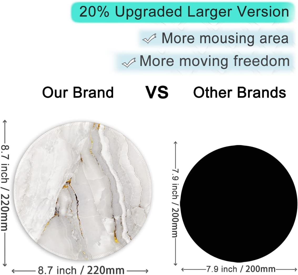 ITNRSIIET Round Mouse Pad with Stitched Edge Premium-Textured Waterproof Non-Slip Rubber Base Desktop Protection Mat Diameter 8.7 inches, White Textured Marble