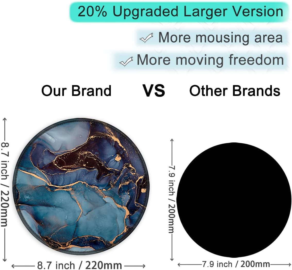 ITNRSIIET Round Mouse Pad with Stitched Edge Premium-Textured Waterproof Non-Slip Rubber Base Desktop Protection Mat Diameter 8.7 inches, Blue and Black Marble