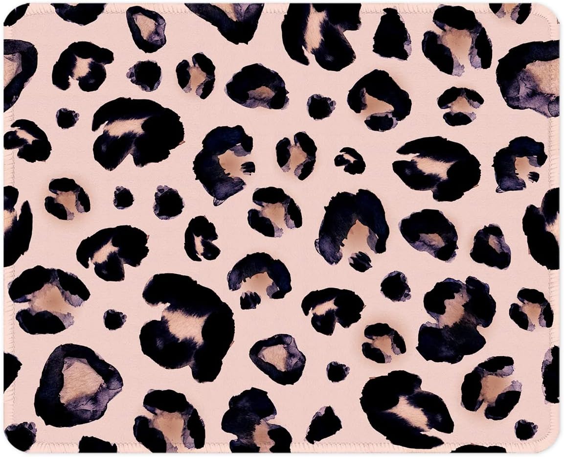 ITNRSIIET Mouse Pad with Stitched Edge Premium Textured Smooth Precise Operation Waterproof Washable Non-Slip Rubber Base Desktop Protection Mat, 10.2×8.3×0.12 inches, Leopard Black Purple