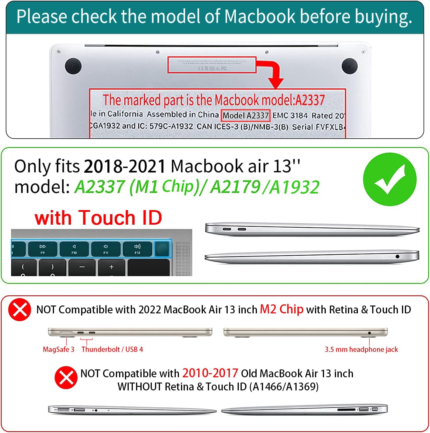 - Applicable Model - Compatible with MacBook Air 13 inch 2021 2020 2019 2018 with Retina Display and Touch ID A2337 M1 Chip/ A2179 / A1932 Model - MGND3LL/A, MGN93LL/A, MGN73LL/A, MGNE3LL/A, MGNA3LL/A, MWTJ2LL/A, MVH22LL/A, MWTL2LL/A, MWTK2LL/A, MVH52LL/A, MVH42LL/A, MVFH2LL/A, MVFM2LL/A, MVFK2LL/A, MVFJ2LL/A, MVFN2LL/A, MVFL2LL/A, MREE2LL/A, MREC2LL/A, MRE82LL/A, MREA2LL/A, MREF2LL/A, MRE92LL/A.