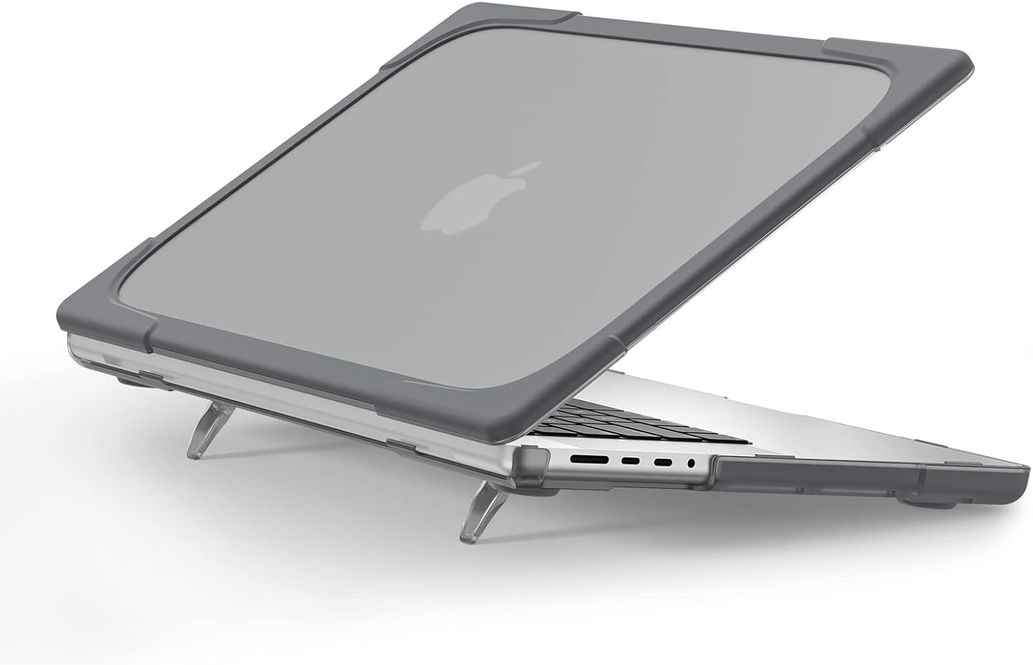 - The built-in foldable kickstands provide an ergonomic typing angle, also give you a better visual experience.Fully vented for safe heat disbursement; Easy access to all ports and features, you can plug your charger, cable or headset without removing the case