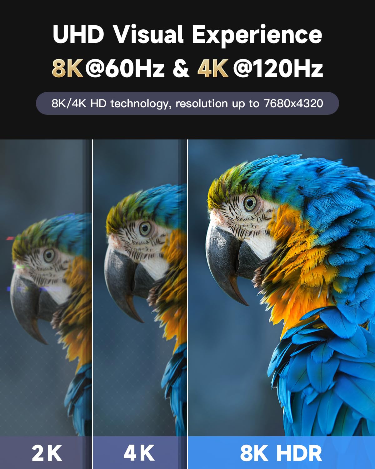 - Universal Compatibility : This 8K HDMI Cable is compatible with the devices with HDMI port. It is also backward compatible with HDMI cables 2.0/1.4/1.3/1.2/1.1
