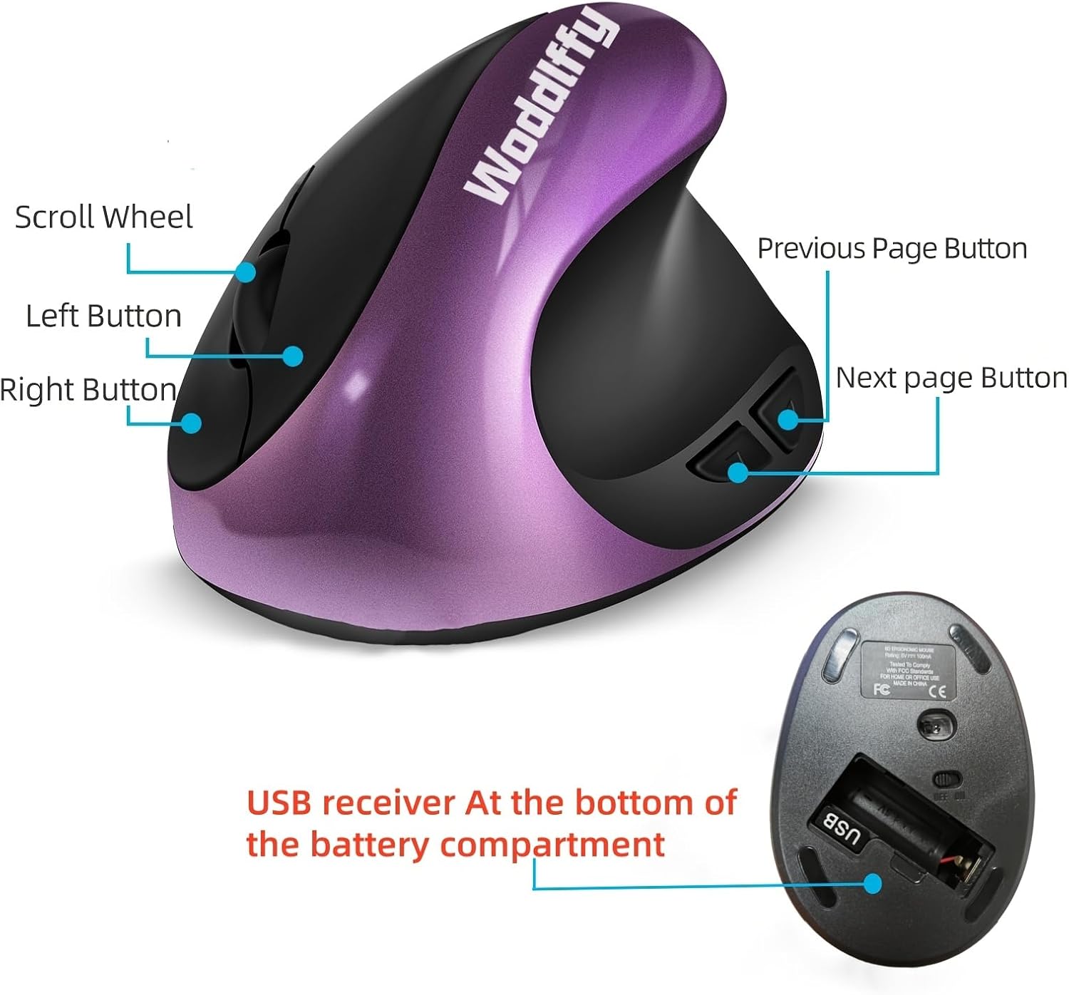 - Vertical Mouse Wireless: USB receiver at the bottom of the vertical mouse.Easy to use