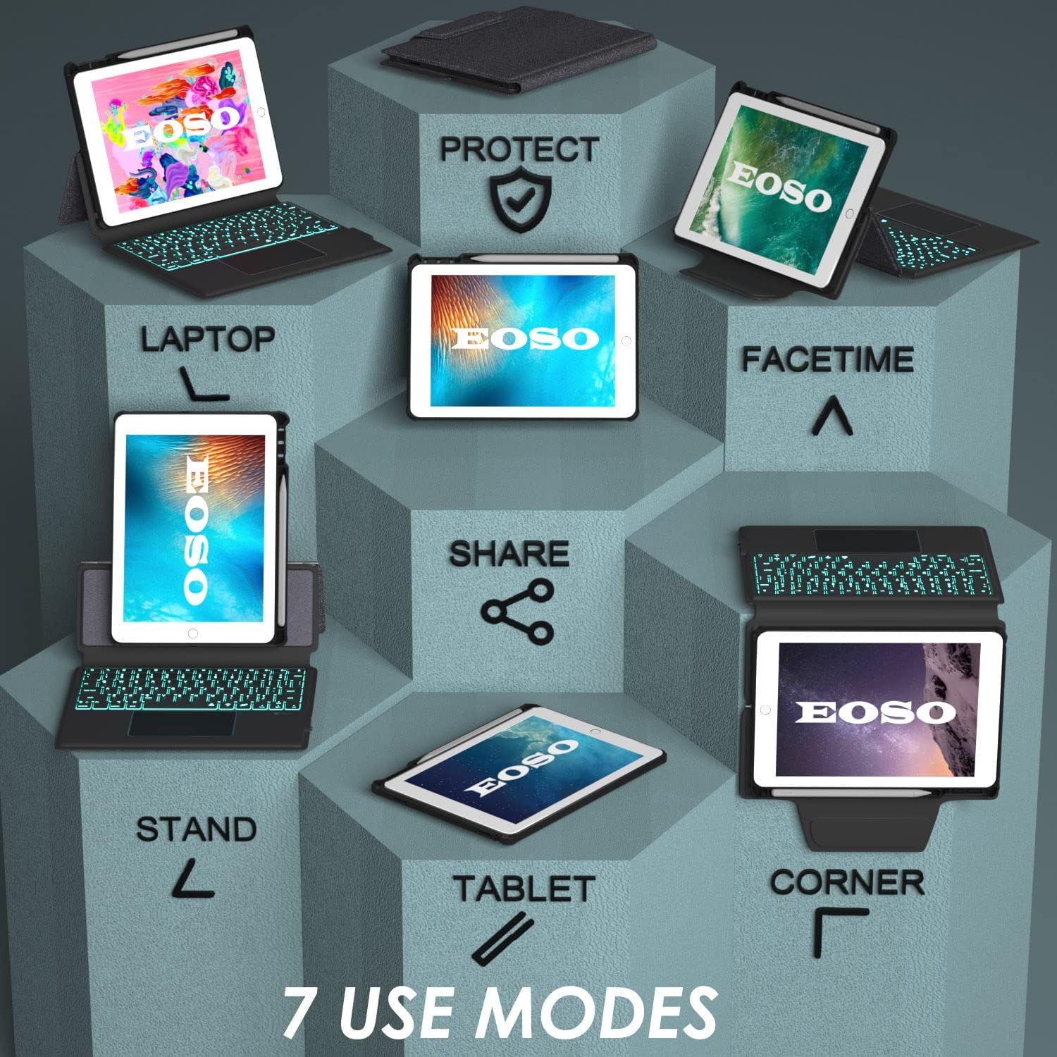 iPad 9.7 Keyboard Case for iPad 6th Gen 2018 - iPad 5th Gen 2017 - iPad Pro 9.7 - iPad Air 2-7 Color Backlight,Touchpad Detachable Slim Cover with Pencil Holder (9.7",Black)