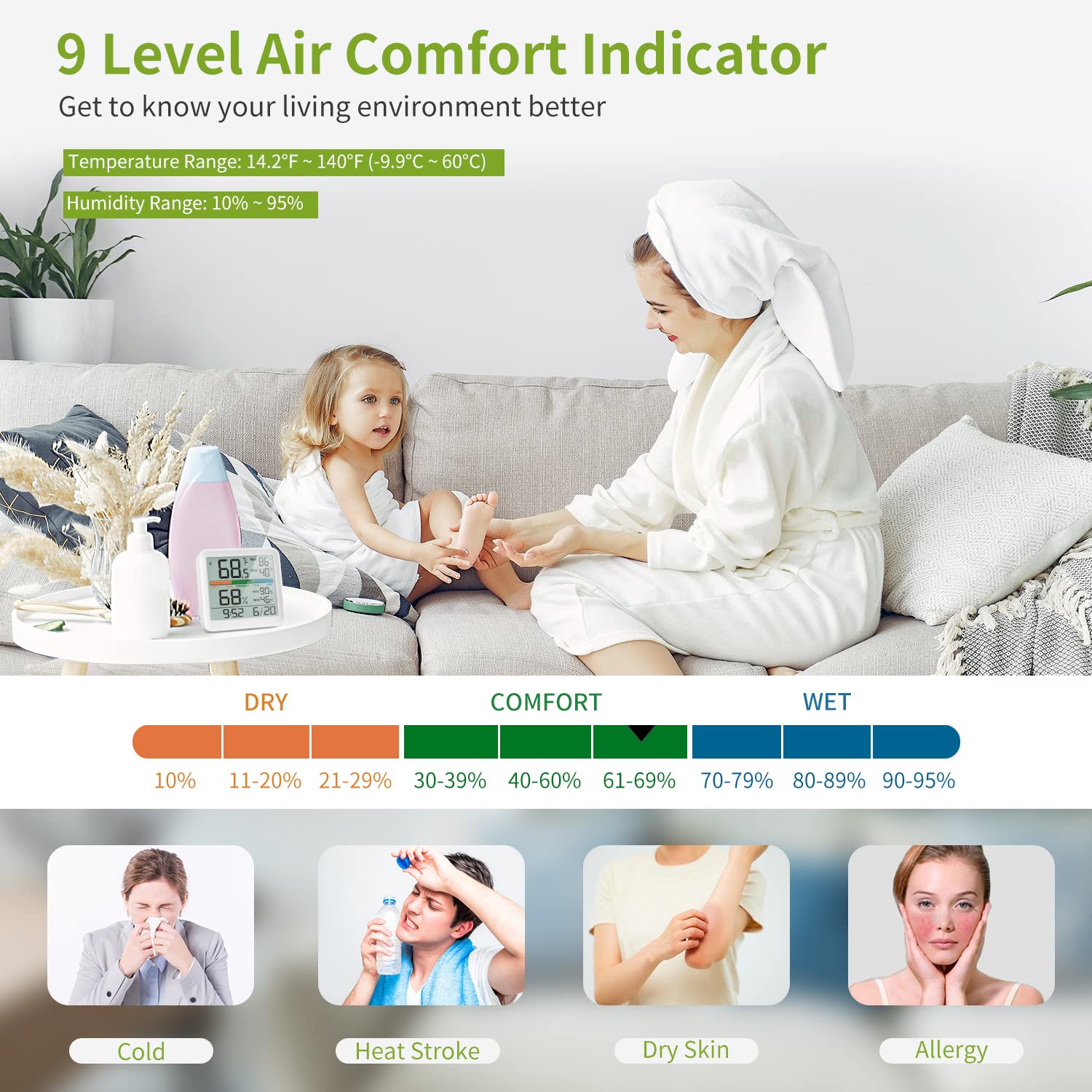 - For a Healthier Home - Designed for indoor use, with sensor range of 14.2°F-140°F and 10%-95%RH, it is perfect for your bedroom, baby room, kitchen, office, garage, wine cellar, greenhouse, and more
