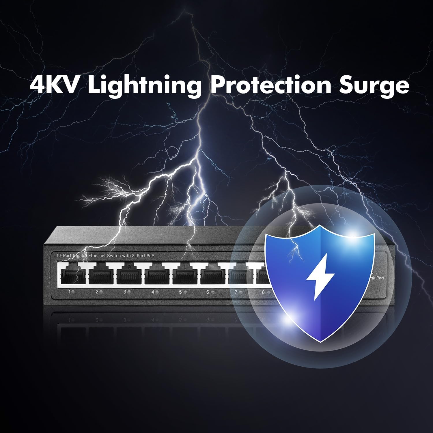- 【10 Gigabit Ports】Includes 8 Gigabit PoE+ ports, 2 gigabit ethernet uplink; switching capacity is 20Gbps, each port can reach 1Gbps rate at the same time, with excellent data exchange performance.