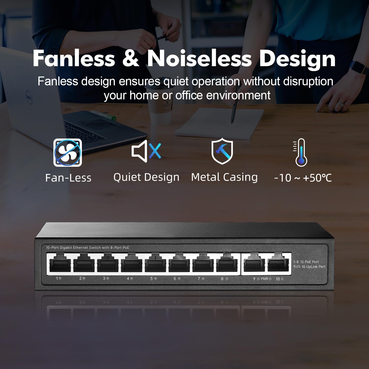 - 【Widely used】Mini size, metal case, fanless silent, double side vents; support desktop and wall mounting. Stable POE and switching chips,2 uplink,can be used in various networks of home,office and business, including computer internet, security monitoring, wireless coverage, transmission access of multiple devices, etc.
