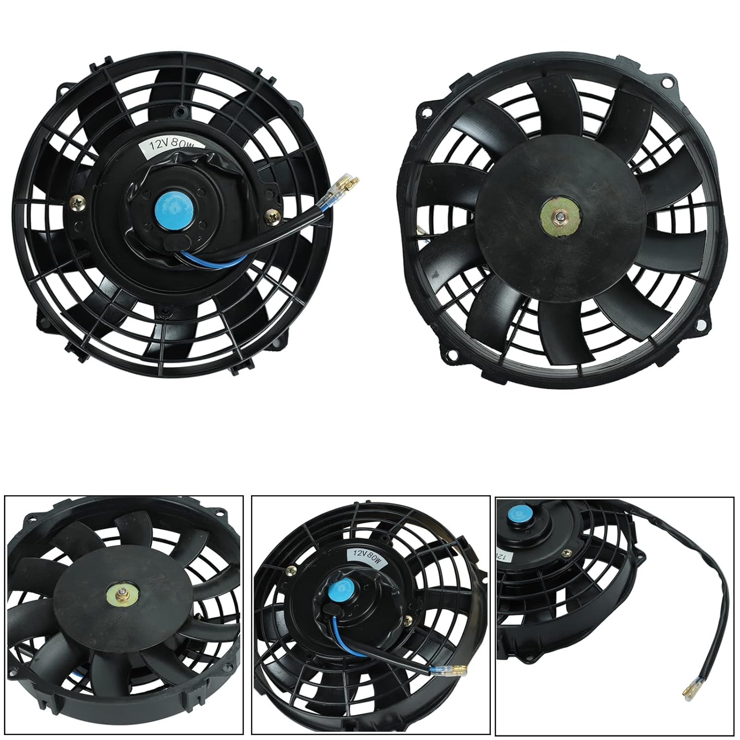 - HIGH-PERFORMANCE: 2PCS 12V 80W 7 Inch radiator engine cooling fan with mount brackets and tie straps kit.Maximum Fan CFM≥800 CFM, Maximum Fan RPM=2900±10% RPM.Fan Diameter (in): 7”. Thickness=2.56 Inch. Number of Blades: 10