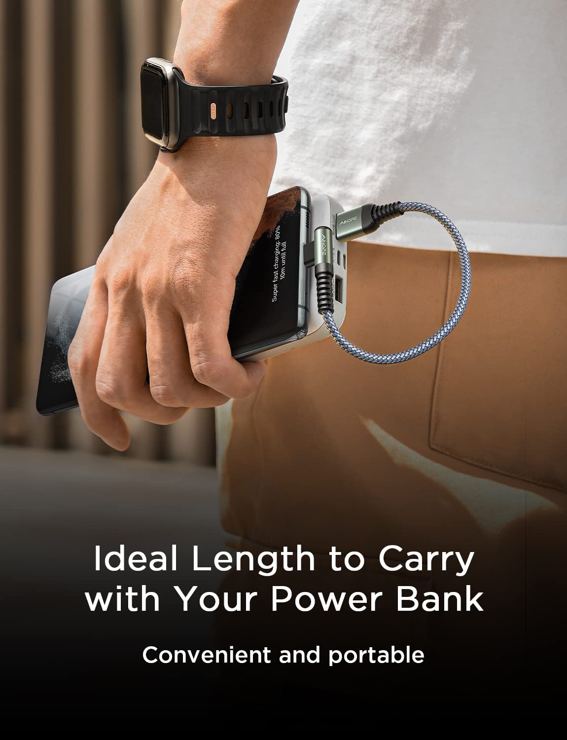 AINOPE USB C Cable 0.5ft, 3.1A Type C Charger Fast Charging Cable Right Angle, Durable Nylon Braided USB C Charging Cable Compatible with Galaxy S10 S9 Plus S21, Note 10 9 LG, Type C Charger Cable