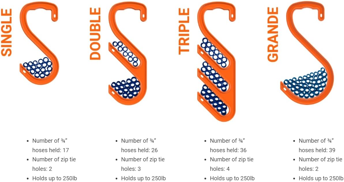HIGH 5 Hook Triple - Heavy Duty, Industrial Safety Hook for Hanging Cables, Cords, Hoses and Welding Leads. 250 lb Capacity (Box of 20)