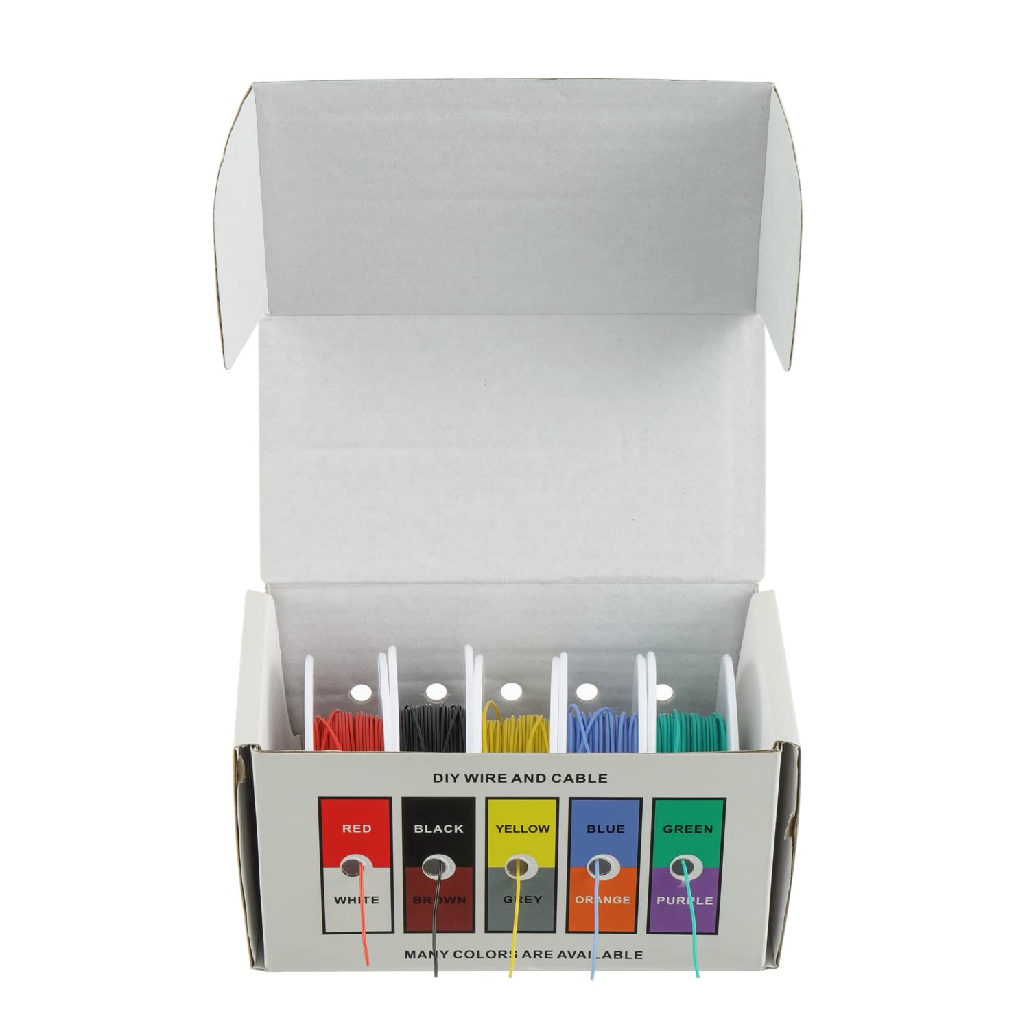 - Package Include:30 Gauge Silicone Stranded Wire 32.81ft of Each 5 Different Colors (red, black, yellow, blue, green), total 164.05ft With plus 20 φ2mm Heat Shrink Tubings(5 Colors 5pcs Each Color) and a Mini wire stripper