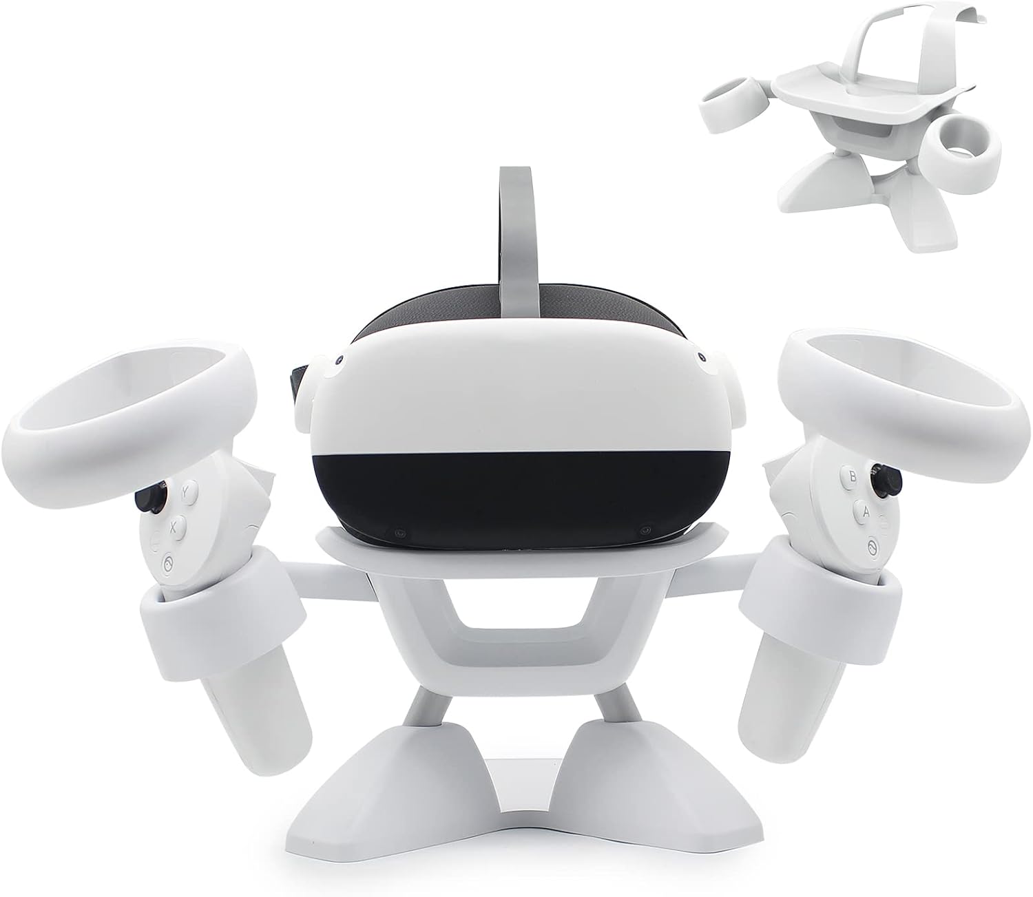 - DURABLE AND STABLE - Made of high quality ABS material, the VR stand is very durable and sturdy. The base of the VR holder is designed with the most stable triangular structure, better protect your VR headsets and touch controllers.