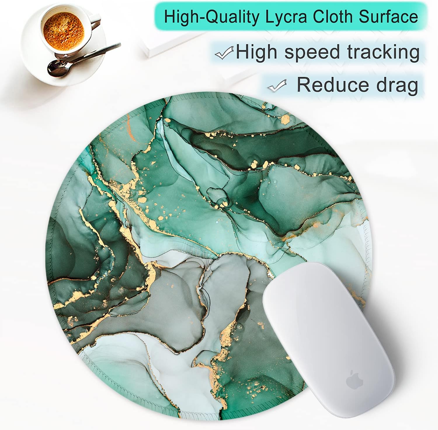 ITNRSIIET Round Mouse Pad with Stitched Edge Premium-Textured Waterproof Non-Slip Rubber Base Desktop Protection Mat Diameter 8.7 inches, Green Marble Texture
