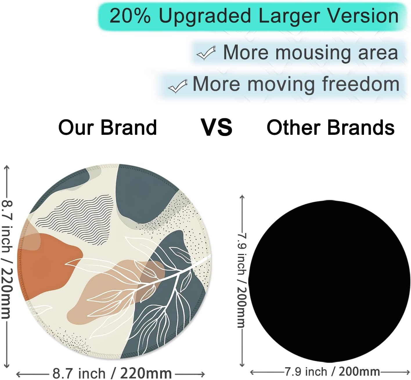 ITNRSIIET Round Mouse Pad with Stitched Edge Premium-Textured Waterproof Non-Slip Rubber Base Desktop Protection Mat Diameter 8.7 inches, Abstract Leaf