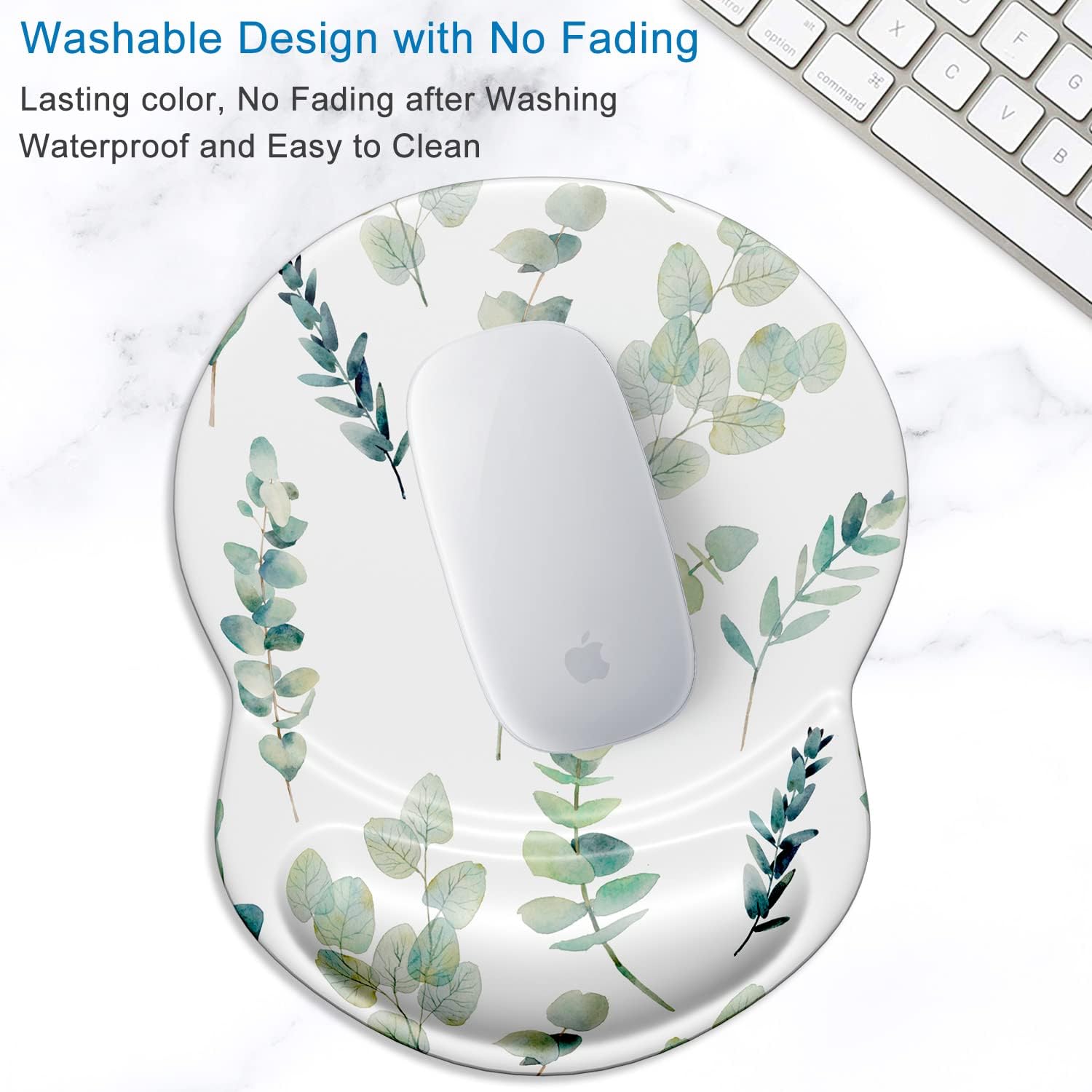ITNRSIIET Ergonomic Mouse Pad with Gel Wrist Support Small Wrist Rest Smooth Surface Non-Slip PU Base Comfortable Office Supplies Pain Relief, 8.7 x 7.2 inches, Eucalyptus Branches