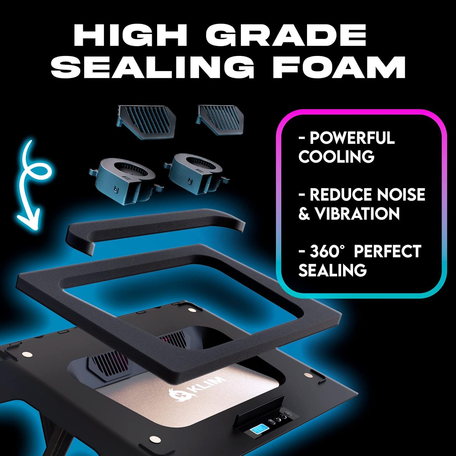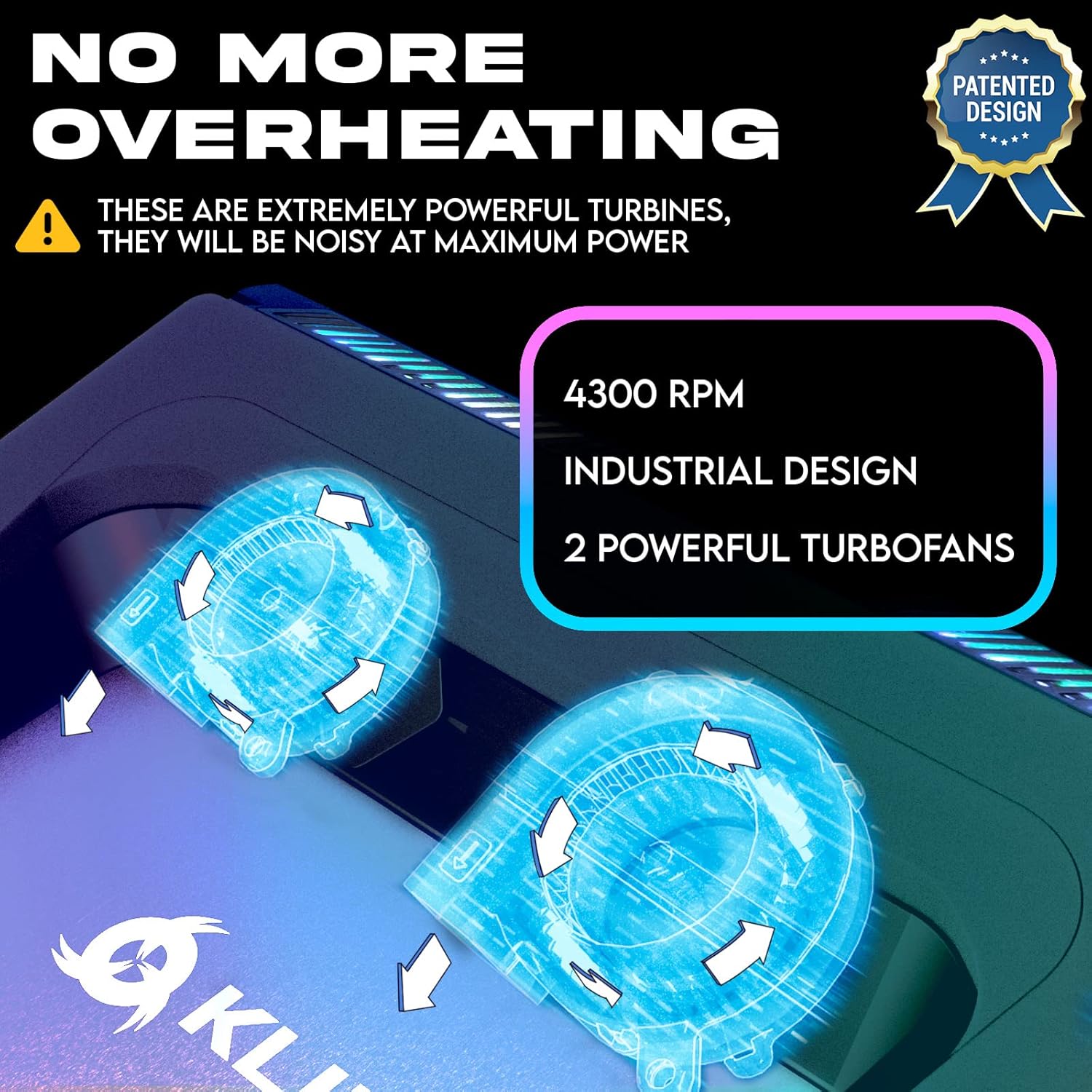 - ❄️ ONE OF THE MOST POWERFUL COOLING PAD TO DATE: Unlike traditional cooling pads, the KLIM Everest features two high-powered (4300 RPM) turbo fans that propel very high volumes of air through your computer, cooling it down in under 30 seconds. The detachable foam acts as a seal to create high pressure and maximize its effectiveness.