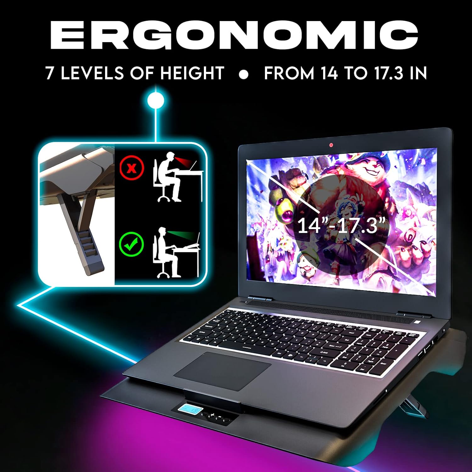 - ⚠️ IMPORTANT INFORMATION: This laptop cooling fan is compatible with laptops following sizes: 11 11,3 12 13 14 15 15,6 16, 17.3 inches. Smaller models are not supported. Also, ensure that your laptop has ventilation openings underneath, so that the air can escape through them. DO NOT USE this model if your laptop does not have any grids underneath (for example, Apple MacBook models). For any questions about compatibility, reach out to us using the "Contact Seller" option on Amazon.