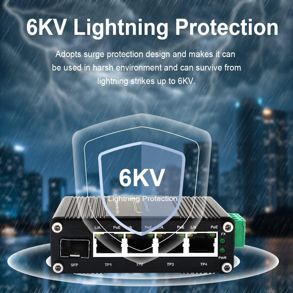 Mini Industrial 4 Port 10/100/1000Mbps Gigabit Ethernet POE + Switch with SFP Port Din Rail/Wall-Mount 4 Port 10/100/1000BASE-T RJ45 + 1 Port 100/1000FX (SFP) Support 12-48V DC