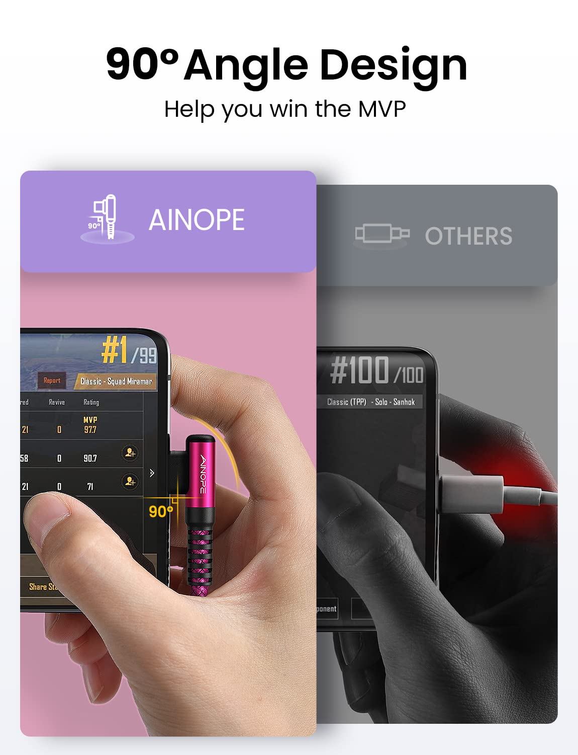 - [Upgraded Exclusive Right Angle Design] This right angle type c charging cable fast charge with an innovative 90 degrees " L " design. It's user-friendly design more convenient and comfortable for playing games, watching videos, reading e-books when you charging. 【 NOTE: The thickness of the compatible mobile phone case charging port is 5.5mm.】