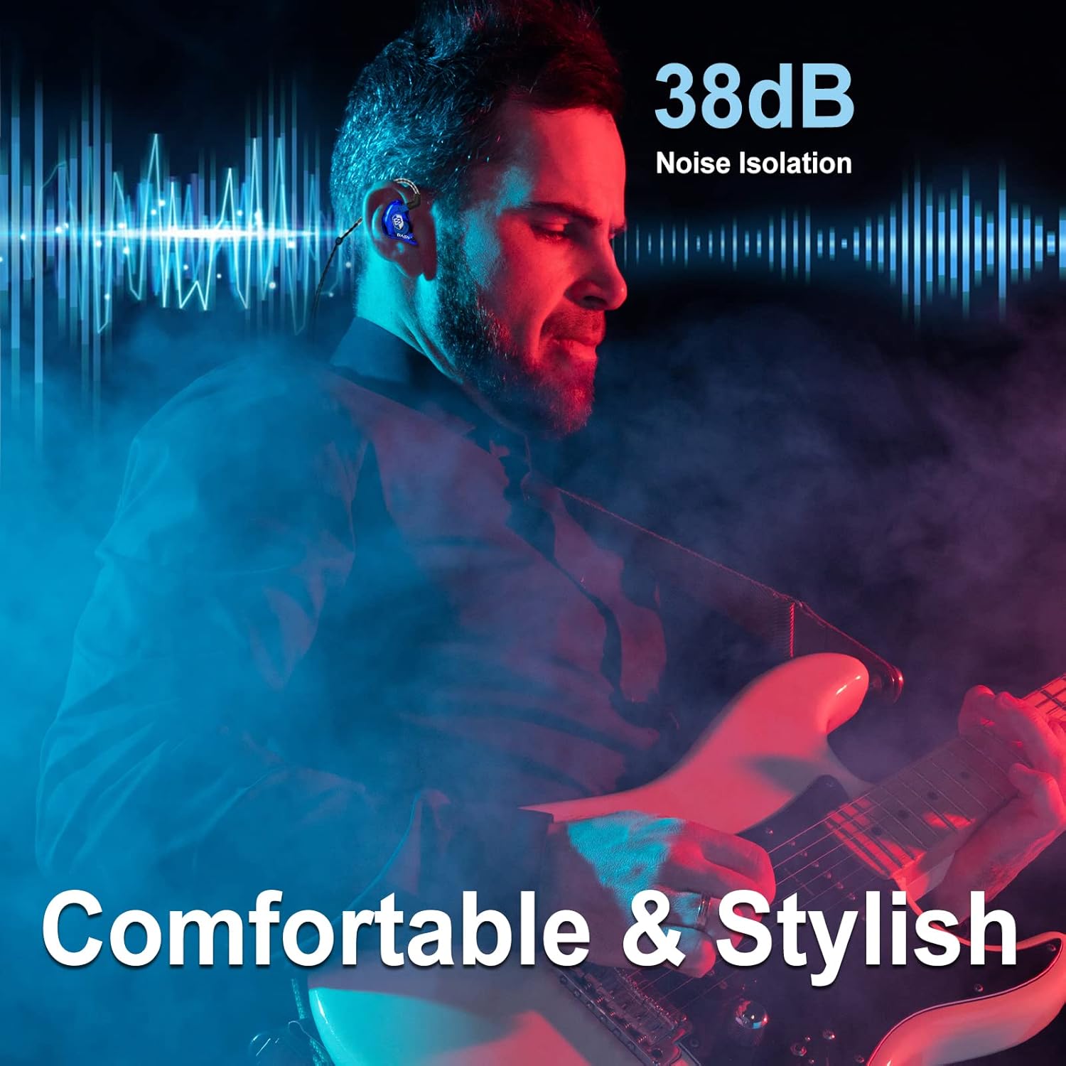 BASN in Ear Monitor Headphones for Musicians Audiophiles Drummers, Bsinger Pro Noise Isolating Earbuds with Dual Driver Dynamic Crystal Clear Sound (Pro Clear Blue)