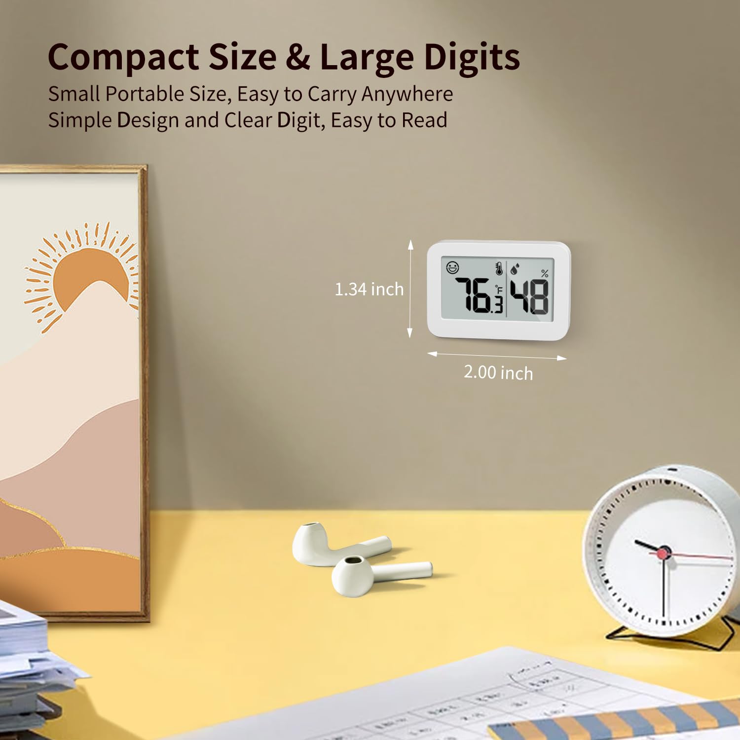 - 2 Mini rectangle digital humidity thermometer allows you to easily know the environment temperature and humidity. Small, Durable and Portable enough for saving space and carrying around. Mini Size: 2 inch * 1.34 inch * 0.51 inch