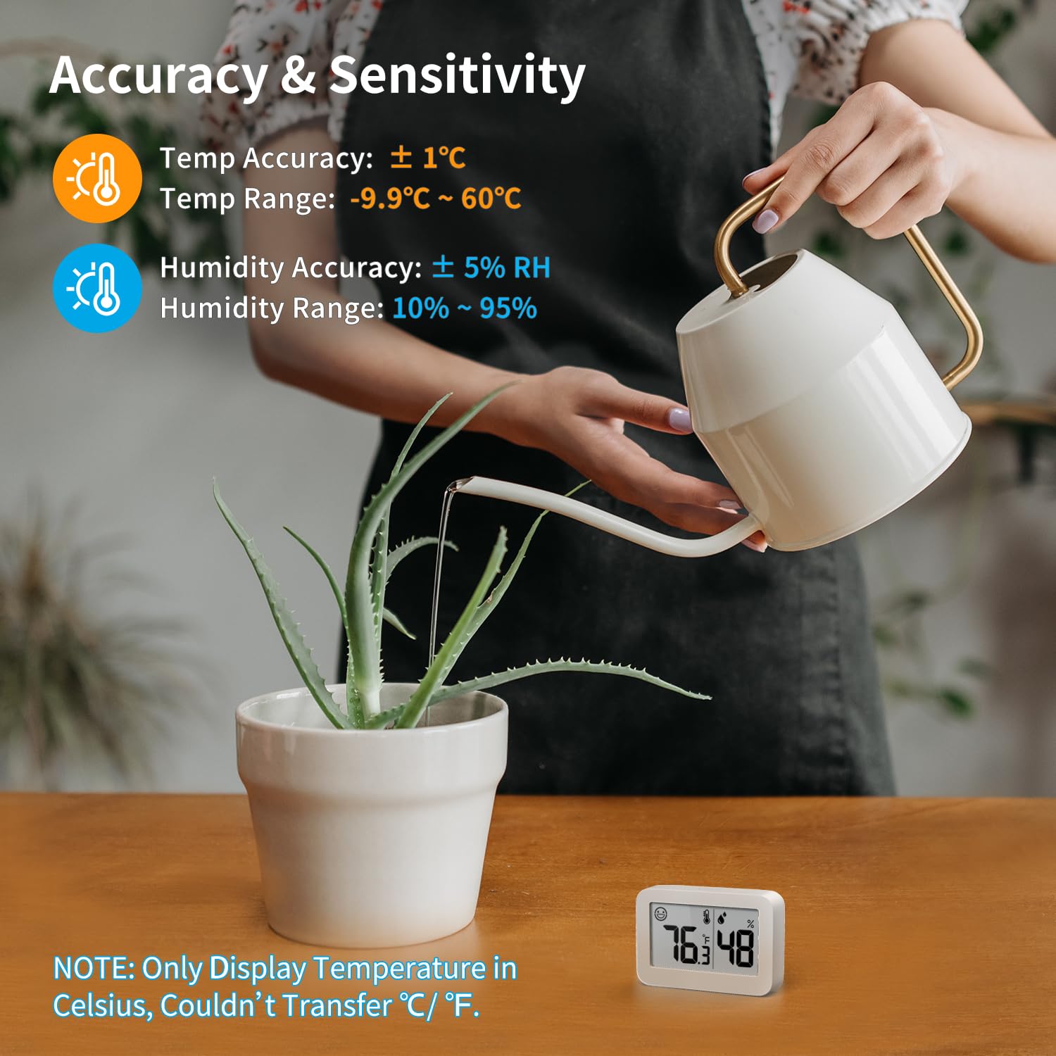 - Accuracy - Doomay Meter monitors the environment reliably every 10 seconds with 11 sensitive vents to provide updated and accurate readings. Wide measuring range: work temperature from -9.9℃ to 60℃, humidity from 10% to 96%. The temp accuracy range around +-1℃ while humidity accuracy is +-3% RH