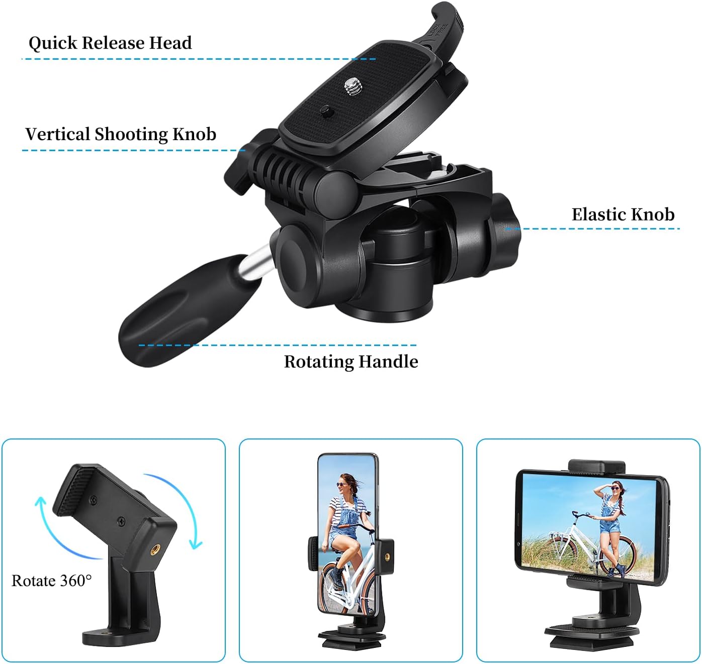 - 【 3-Way Pan Head 360° Rotation】 JOILCAN camera tripod with stable smooth ergonomic 3-way pan head: headlock, pan lock, tilt lock, satisfy all the needs of vertical, horizontal, and overhead photography, et. Camera tripod stand with zippered storage bag