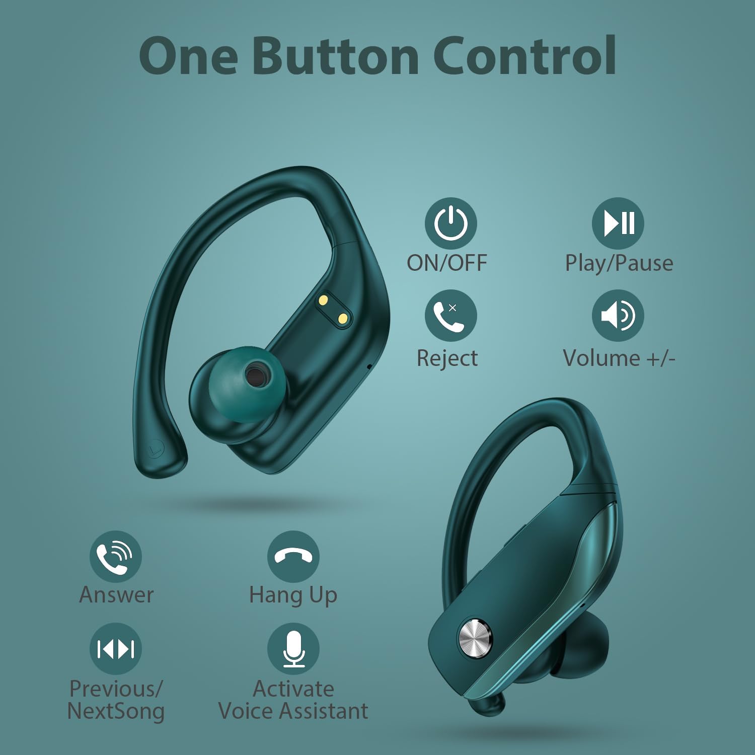 bmanl Wireless Earbuds Bluetooth Headphones 48hrs Play Back Sport Earphones with LED Display Over-Ear Buds with Earhooks Built-in Mic Headset for Workout Green