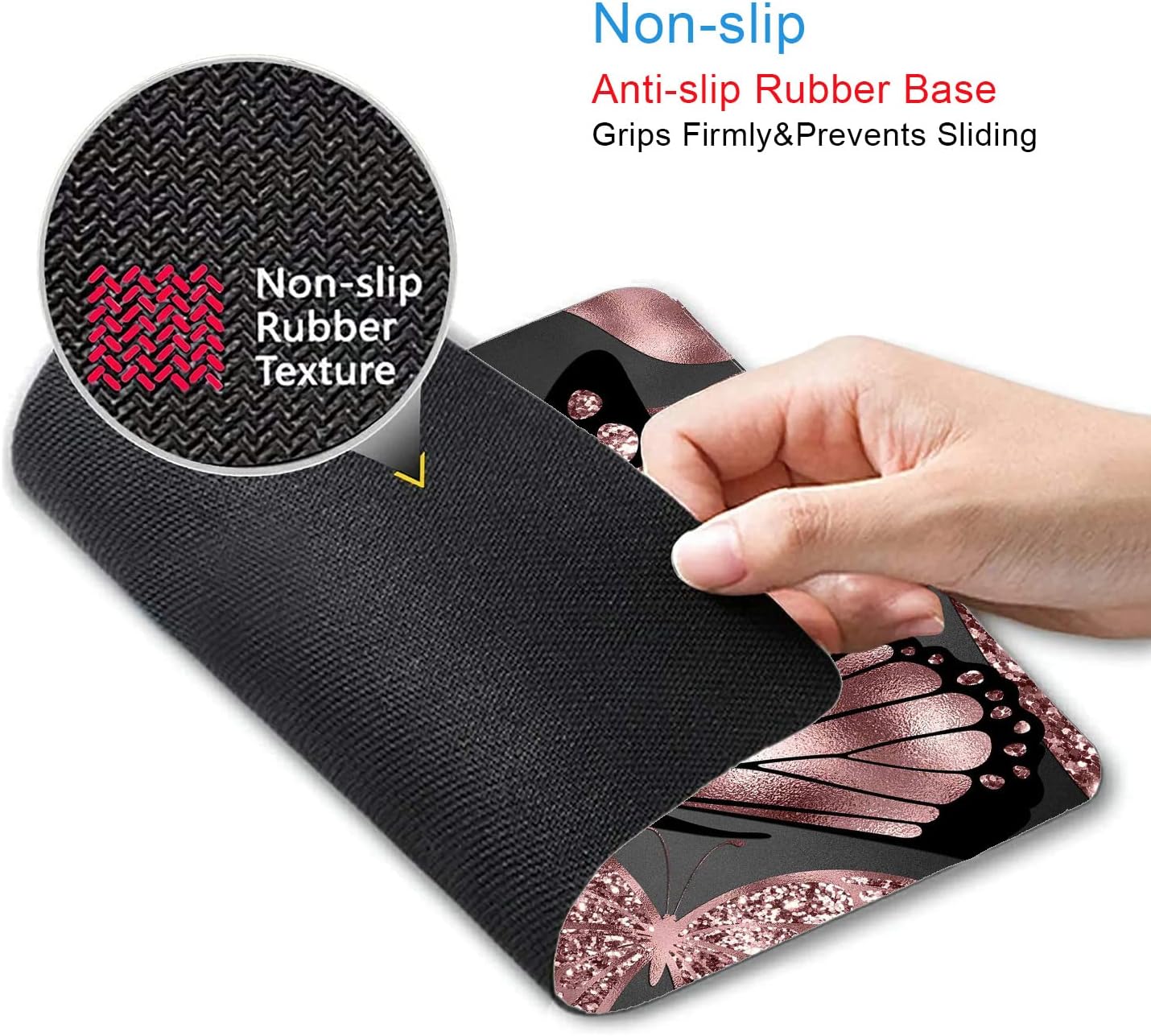 IMAYONDIA Mouse Pad, Rose Gold Butterfly Mouse Pad, Non-Slip Rubber Base Mousepad, Mouse Mat Desk Pad for Work, Game, Office, 9.5 x 7.9 Inch - Beautiful Modern Glitter Foil Design