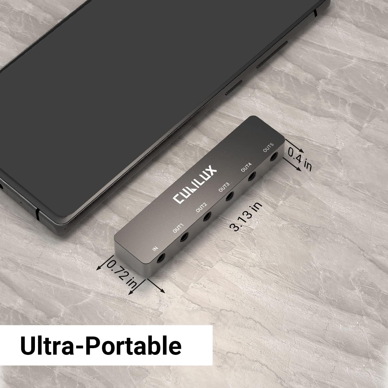 Cubilux Professional 5-Way 3.5mm AUX Splitter, Aluminum Case 5-Channel 1/8” Stereo Headphone Splitter, Multi-Port TRS Audio Share/Split Box/HUB for Speaker Earphones Laptop PC Smartphone Tablet