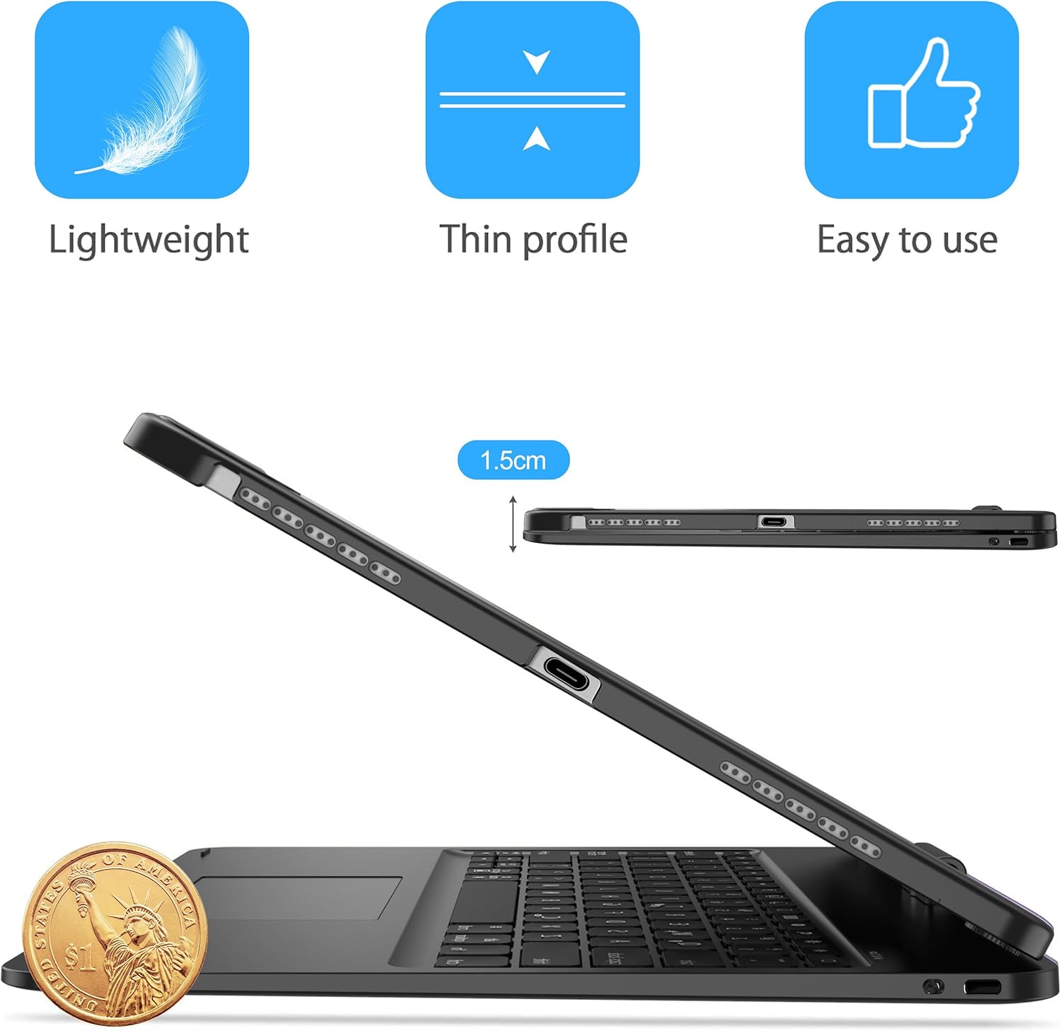 - Enhanced Technology - Keyboard for iPad Pro 12.9-inch has a wider key pitch, the error rate when typing is significantly lower, the buttons make it feel like you are typing on a regular laptop, allowing for optimal typing. The keyboard case will improve your efficiency with its sensitive, accurate and multi-gestures touchpad, just like using a mouse (optional: press Fn+T to turn on/off the trackpad function ).