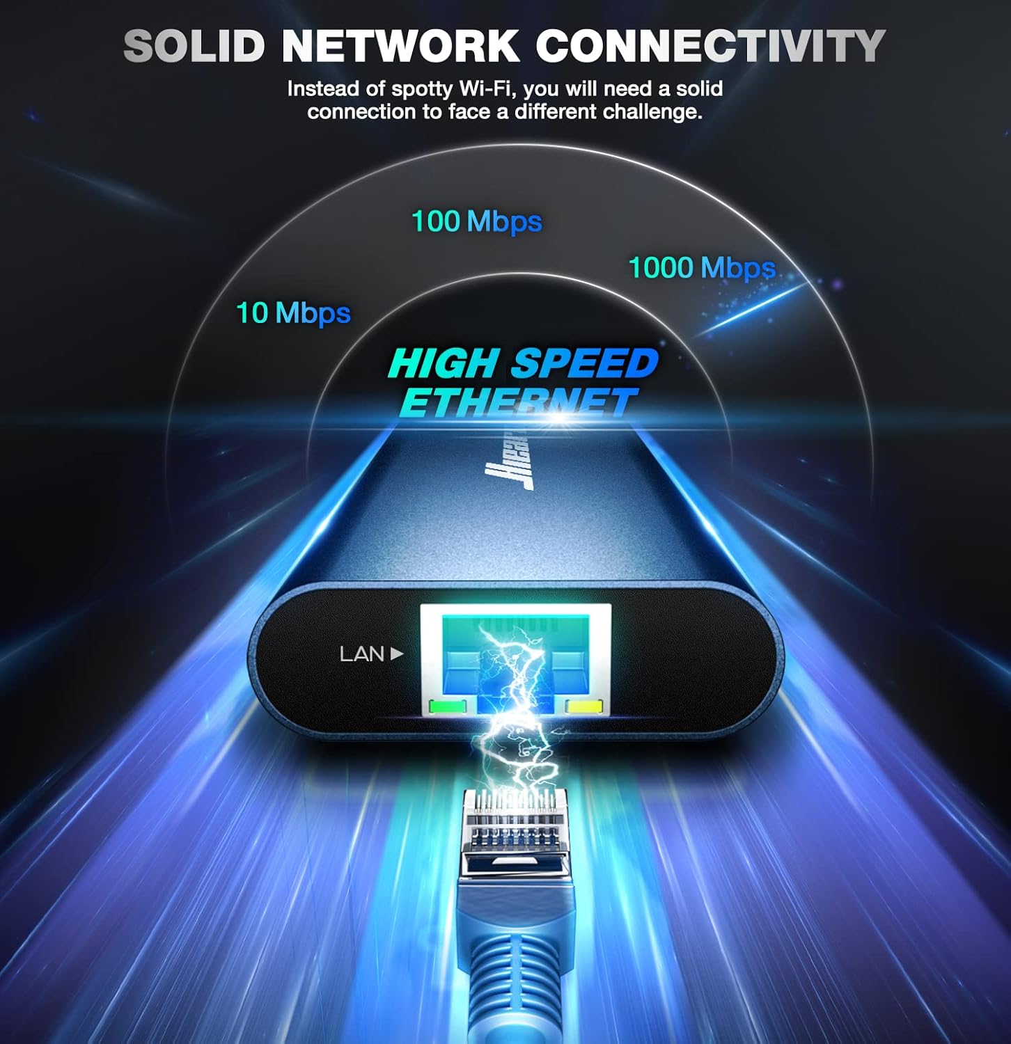 - Multi-Functional USB C Adapter: Designed for Apple Families (compatible for Mac Macbook pro/air iPad Pro), includes 1 x 4K HDMI, 1 x Ethernet port, 100W PD Port, 3 x USB 3.0 (5 Gbps), and TF/SD card slot (up to 104 Mbps)