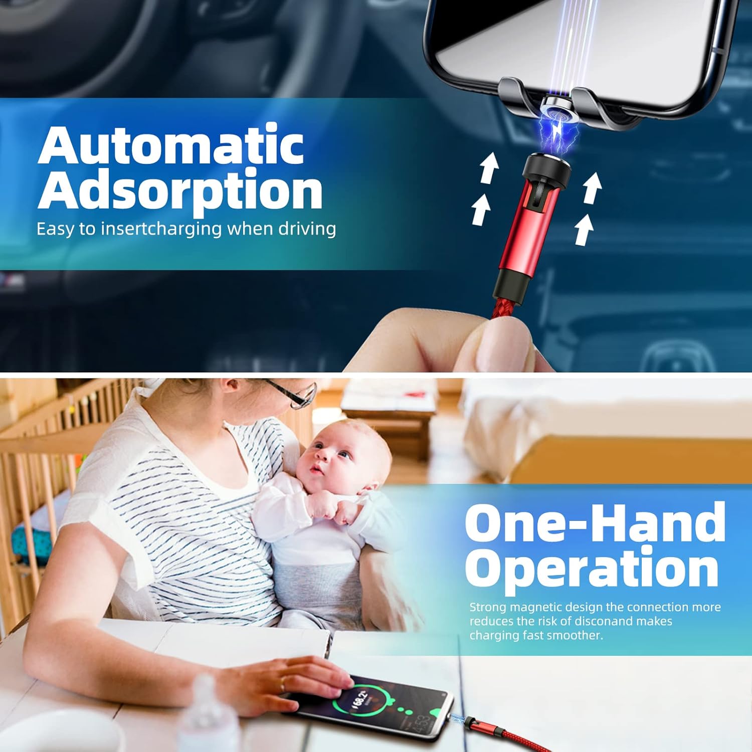 - 【540°Rotation Design】The upgrade magnetic charging cable allows magnet tip to rotate 360° and charging head to bend 180°, this convenient design allow you to find the right angle for every charging occasion. Precisely completes the magnetic connection, which improves charging efficiency, Give you a different charging experience.