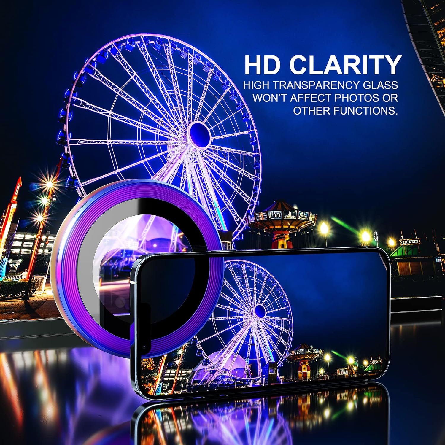 - Personalized Decoration: Made of high-quality aviation aluminum metal ring and 9H tempered glass. The delicate and precise CD texture spiral pattern gives your iPhone 13 Pro/Pro Max camera lens a new appearance. The multicolor lens protector ring matches your style.