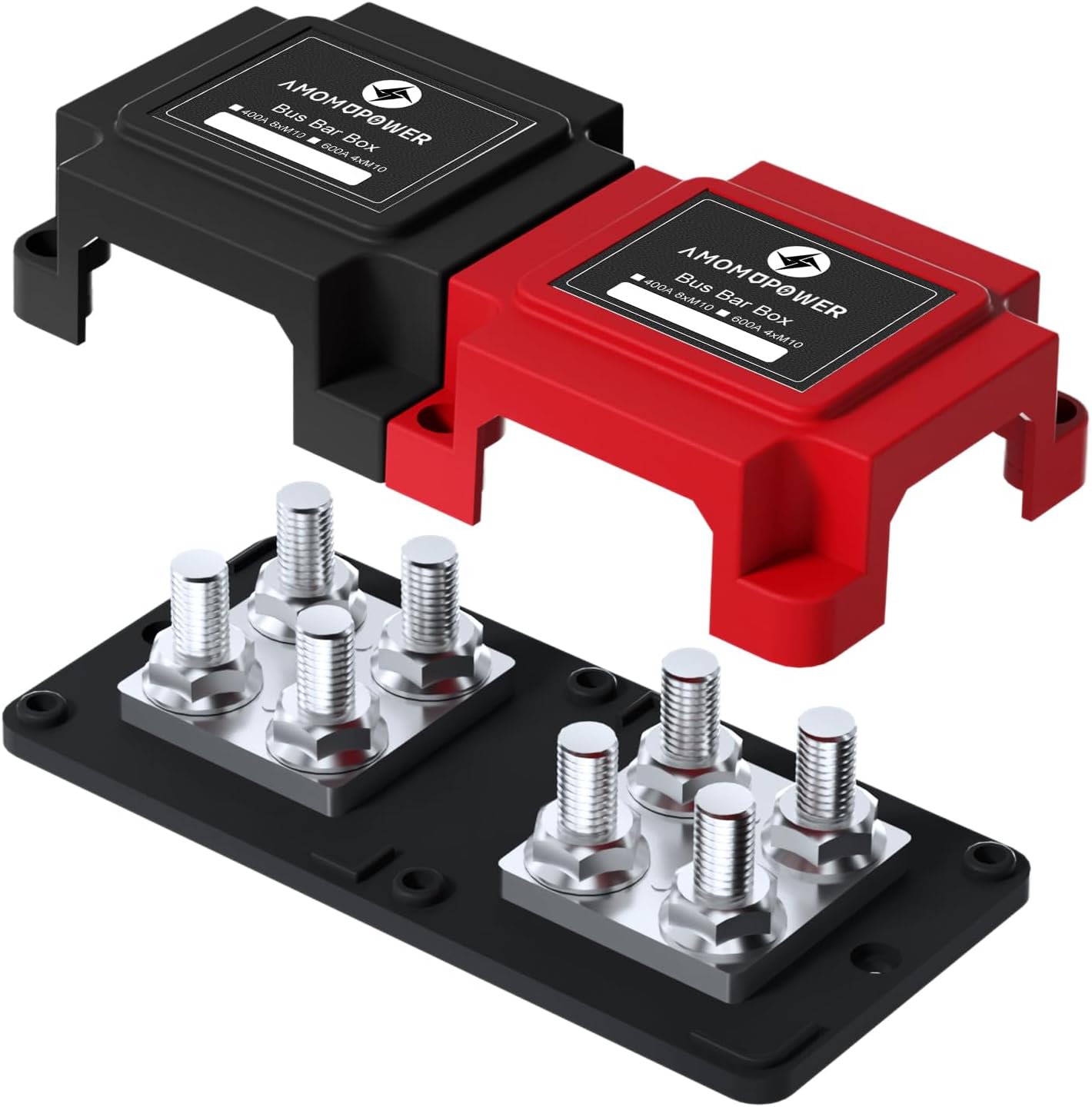 Heavy Duty 400A 12-48V Tin-Plated Copper Block Bus Bar 8xM10(3/8") Studs Independent Modular Positive Negative Ground Battery Junction Block Buss Bar for Solar System Marine Truck Boat