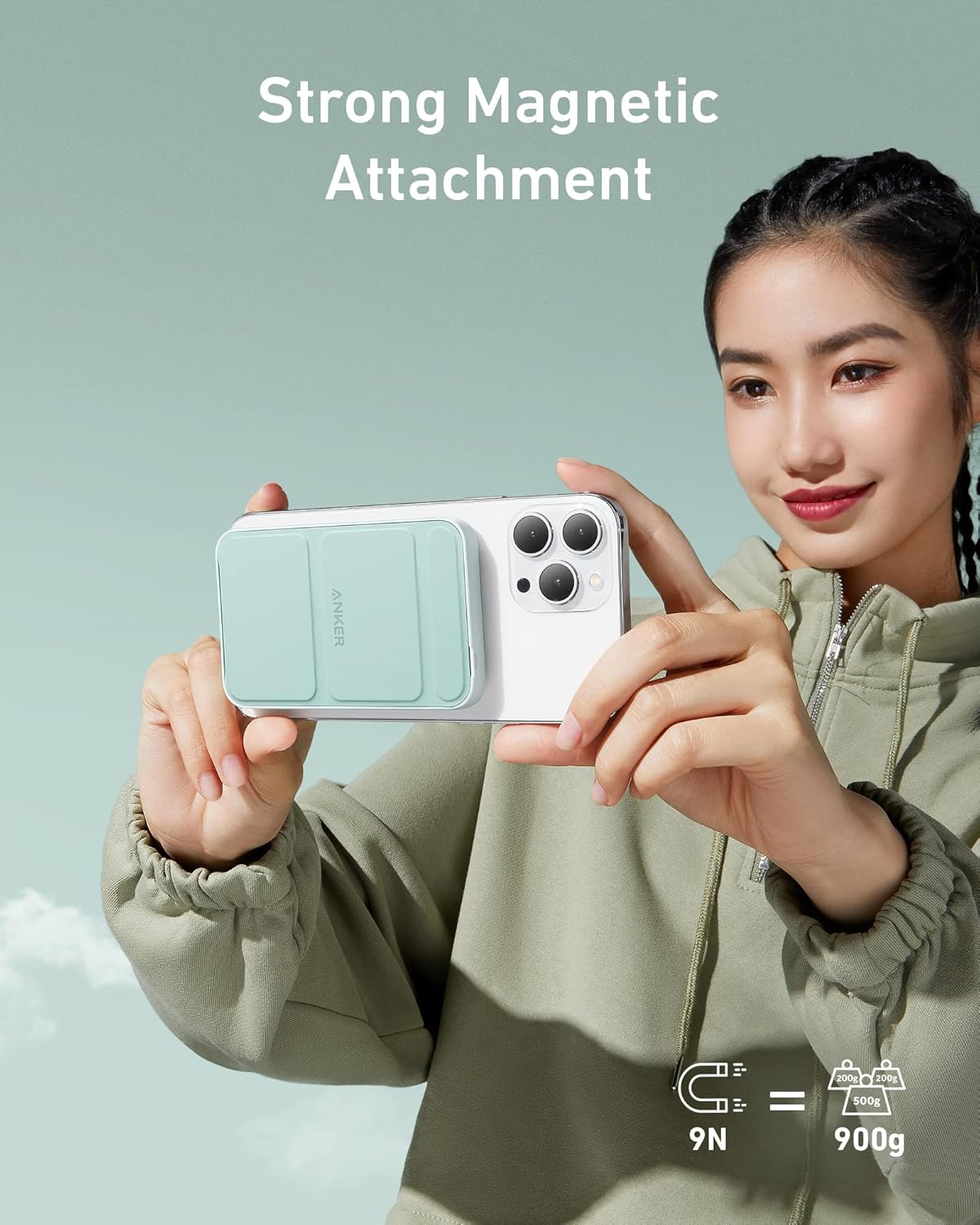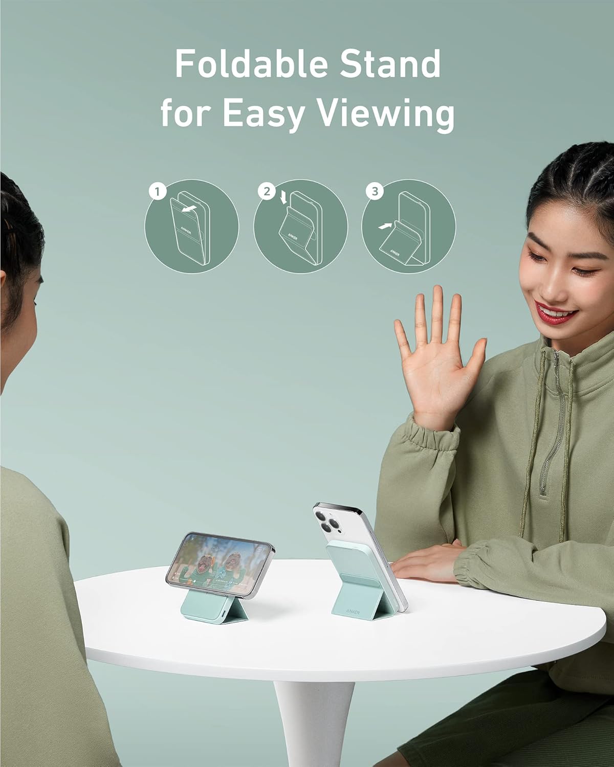 Anker 622 Magnetic Battery (MagGo), 5,000mAh Foldable Magnetic Wireless Portable Charger with Stand and USB-C Port (On The Side), Magsafe-Compatible for iPhone 16/15/14/13 Series