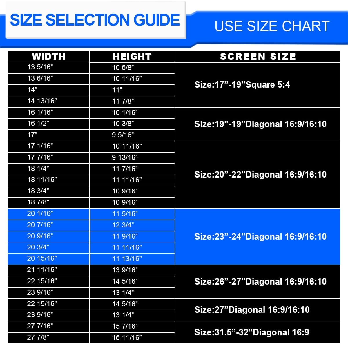- HD Anti-Scratch Coating Process: The privacy screen filter fits for 23.6”23.8”24”widescreen monitors with a 16:9 aspect ratio. Actual Filter Size: Width: 21.22 inches , Height: 12.6 inches. It is designed with a combination of high-definition anti-blue light privacy film and acrylic anti-scratch technology, which greatly improves the clear view for you and protection of the product. Please verify your computer screen's width and height size, not recommended to based only on the diagonal size