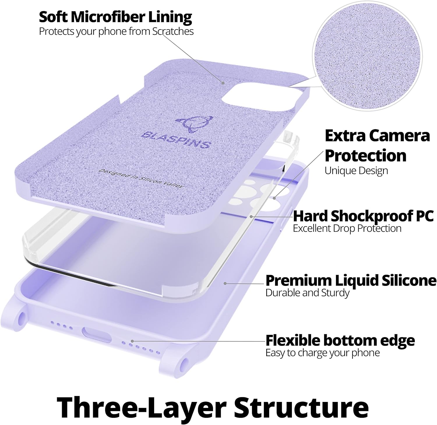 Blaspins Crossbody Lanyard Strap Case for iPhone 13 Mini, Neck Cross Body, Adjustable Holder Removable, Drop Protection Shockproof, Hands-Free Silicone Case 5.4 inch, 150 cm Strap, iP13mini - Purple